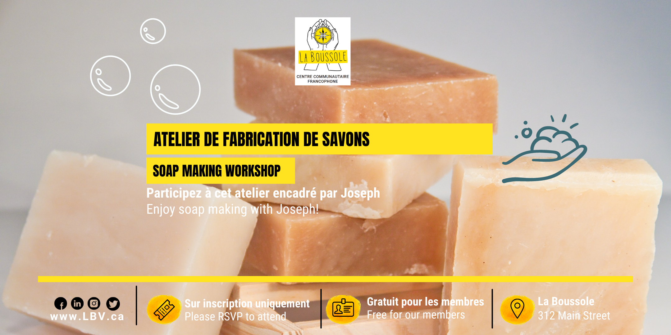 L'atelier est GRATUIT mais nous vous encourageons à faire un DON : https://www.canadahelps.org/fr/organismesdebienfaisance/la-boussole-centre-communautaire-societe/